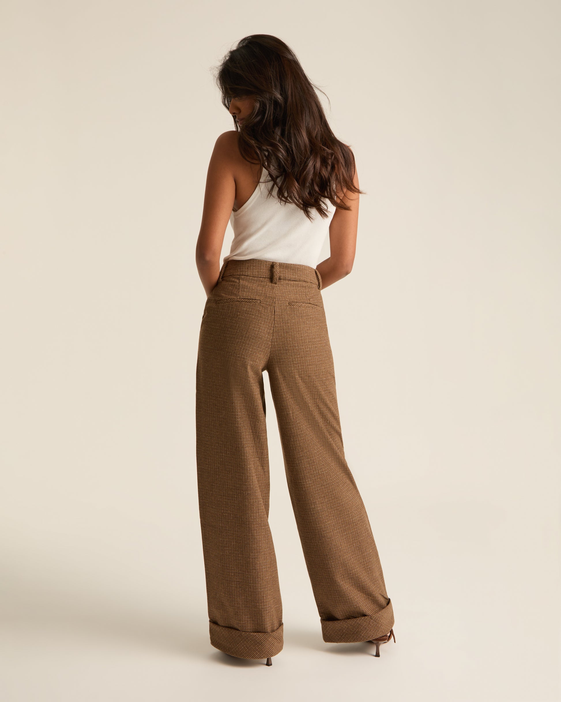 Cut from heritage brown check wool, these trousers bring a modern edge to classic tailoring. A turned-up cuff adds an elevated finish, while the fit is designed to flatter — slim through the waist and thigh, before easing into a wider leg for a dramatic, elongated silhouette. Perfect styled with a blazer or knit for countryside-to-city versatility.